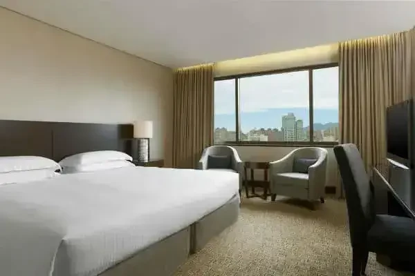 Pokoje gościnne posiadają wygodne łóżka, skórzane fotele, telewizory płaskie 42", duże łazienki z prysznicem deszczowym, ekspresy Nespresso i okna od podłogi do sufitu z widokiem na wieżowiec Taipei 101.